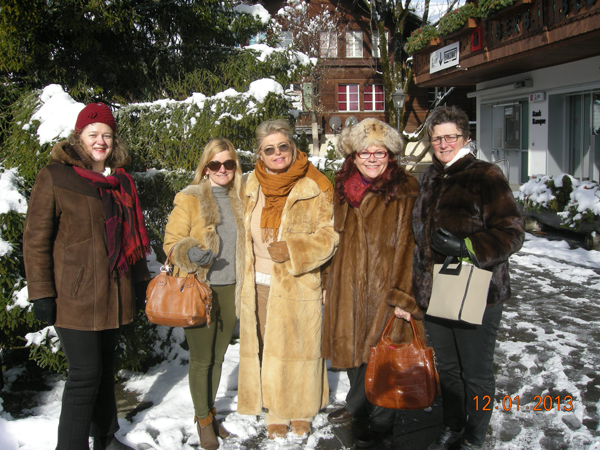 Doch zurück zum Anfang unserer unkomplizierten, flotten Reise, bei der wir Donnertag nachmittags gutgelaunt und neugierig Gstaad erreichten, um unser Hotel, wie sich herausstellen sollte, ein Hotspot der Einheimischen und Gstaader Original, zu beziehen. Der erste Abend begann mit einem fulminanten Abendessen im Hotel Palace, gemeinsam mit zwei Clubschwestern unseres Patenclubs Liechtenstein Vaduz, Eva und Jolanta, zu dem uns unsere Monika (Studer) großzügig einlud. Dieser endete bei entspannter Livemusik, knisterndem Kaminfeuer und einem Gläschen Averna vor einer zauberhaften Kulisse üppig dicker Schneeflocken hinter den weitflächigen Fensterflächen. Dieser dichte Schneefall war es nun auch, der uns an Schifahren Freitags nicht mehr zu denken erlaubte, was uns ausreichend Zeit gab, von Boutique zu Boutique zu flanieren um uns probeweise in Cashmere und Vikunia zu hüllen. In einem dieser herrlichen Geschäfte fiel dann auch der Titel dieser Erzählung. Den in Gstaad gibt es laut einer einheimischen Verkäuferin keine Wirtschaftskrise, nur Wonne, Grießchmarrn und gefüllte Läden, eine Luxusseifenblase eben - und man hätte es nicht treffender formulieren können.